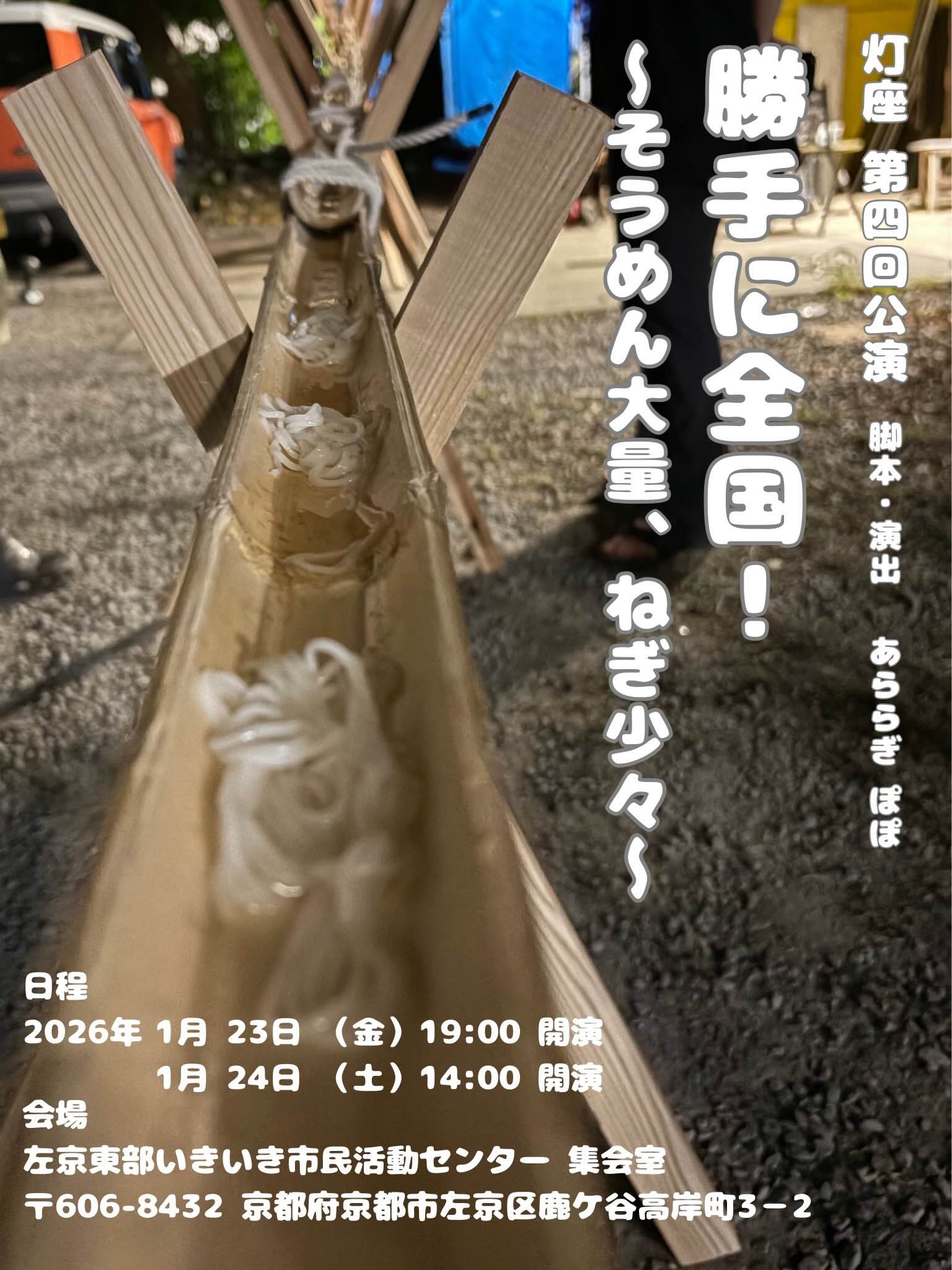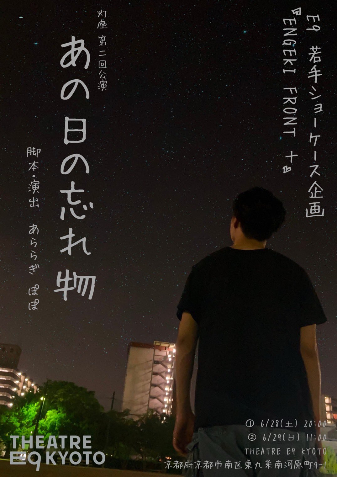 ジャンルとしての"灯座(ともしびざ)"を確立すべく活動している劇団。直近2年の京都学生演劇祭に出場し、2024年に演出賞・審査員奨励賞・TOWA賞、2025年には観客賞を受賞。観客をゆるく巻き込む作品を特徴とし、観客と出演者の境界をなくし、「その場にいる皆で楽しむこと」を目指している。